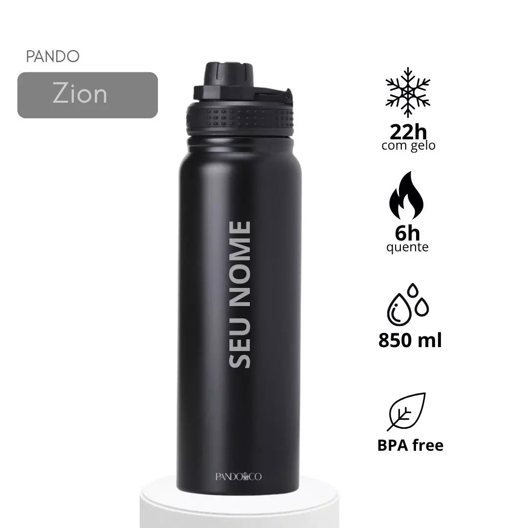 A Pando Zion é a expressão da presença e do propósito. Com acabamento preto mate minimalista, corpo em aço inox livre de BPA e isolamento térmico premium, ela mantém sua bebida quente ou gelada conforme o seu ritmo.