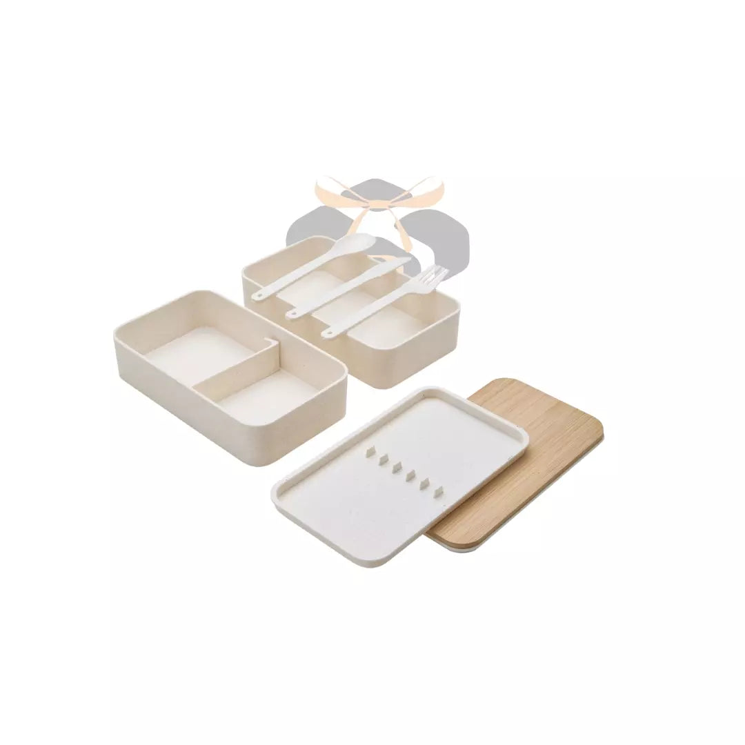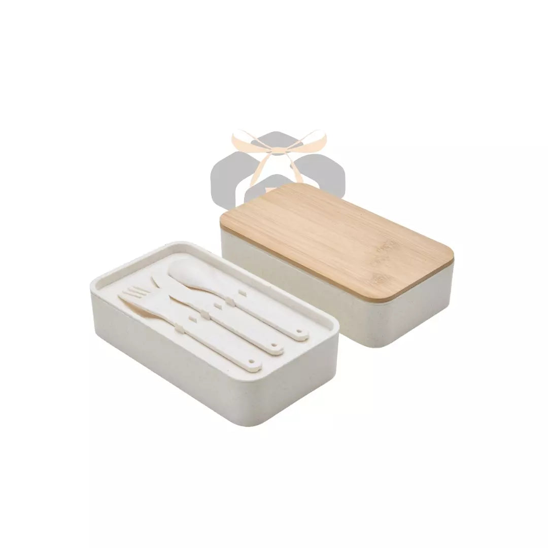 Acompanha garfo, faca e colher em fibra de trigo, além de uma divisória removível para melhor organização dos alimentos. Um elástico de segurança garante o transporte seguro e prático.